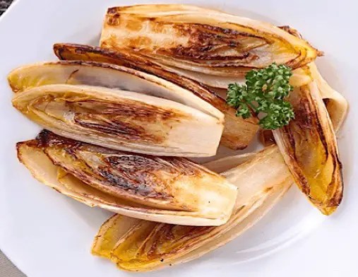 Les endives braisées sont un plat à base d’endives, bouillon, huile d’olive, échalote, oignon, sel et poivre. Braiser est une technique consistant à cuire des pièces entières de viande, poisson ou légume lentement et à couvert dans un liquide de mouillement, aussi appelé fond de braisage, avec une garniture aromatique.